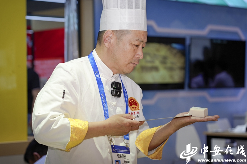 “我這次帶來的是淮南豆腐宴特色菜。”張士宏指著琳瑯滿目的豆腐菜品介紹道:“這道‘楚大鼎’是用豆腐還原楚國重器,那片‘古城墻’則復刻了壽縣古城風貌。每一道菜品都在講述壽縣的歷史故事,讓歷史會說話,讓文物會說話,讓文化會說話,讓豆腐會說話。”