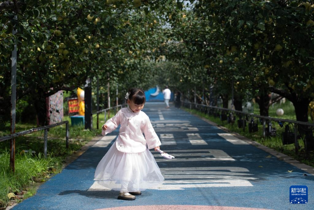9月20日,小女孩在安徽省宿州市碭山縣一處酥梨文化主題樂園內玩耍。新華社記者 張端 攝
