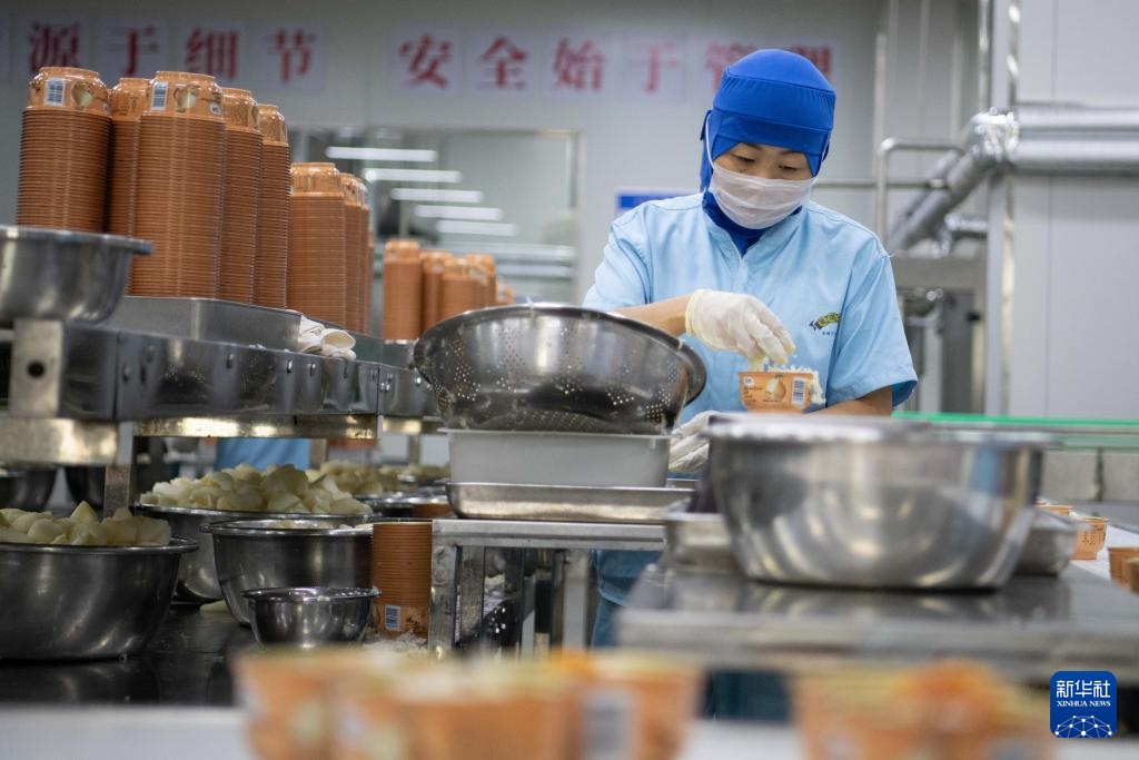 9月18日,在位于安徽省宿州市碭山縣的安徽龍潤堂生物科技有限公司內,工作人員在小吊梨湯生產車間作業。新華社記者 張端 攝
