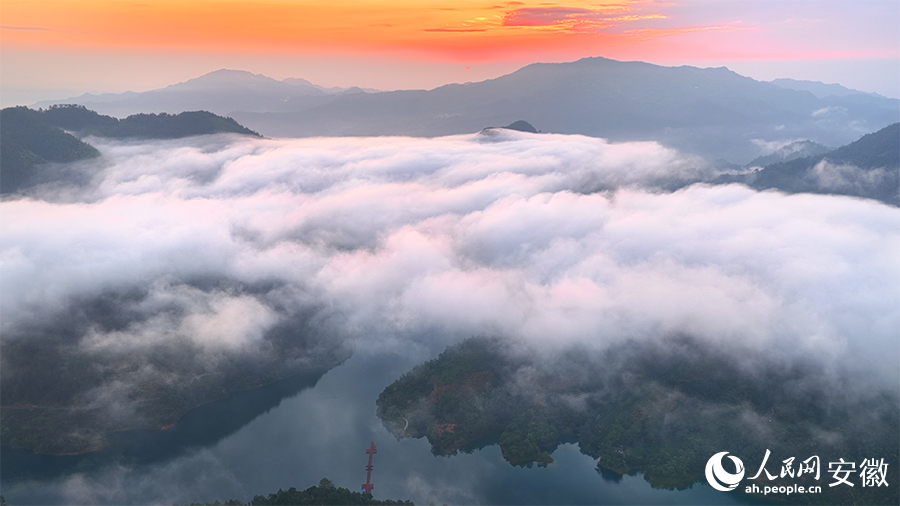 清晨時分,豐樂湖云霧繚繞,美不勝收。人民網(wǎng) 郭昊攝