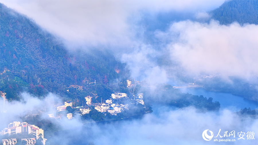 云霧中的徽派建筑美若畫卷。人民網(wǎng) 郭昊攝
