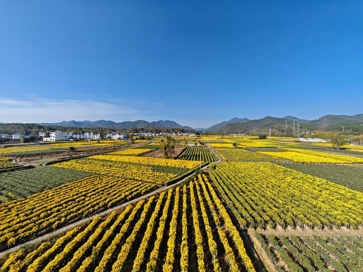一花引領(lǐng),全域芬芳。如今,菊花種植產(chǎn)業(yè)已從鹽鋪村輻射至齊云山、萬安、藍(lán)田、源芳等多個鄉(xiāng)鎮(zhèn)。休寧縣依托優(yōu)質(zhì)鄉(xiāng)村旅游資源,引導(dǎo)企業(yè)延伸產(chǎn)業(yè)鏈條,大力發(fā)展菊花深加工,不斷提升產(chǎn)品附加值,走出一條農(nóng)文旅深度融合的特色發(fā)展之路。據(jù)統(tǒng)計,今年全縣菊花種植面積達(dá)1.81萬畝,年產(chǎn)值突破2.3億元。