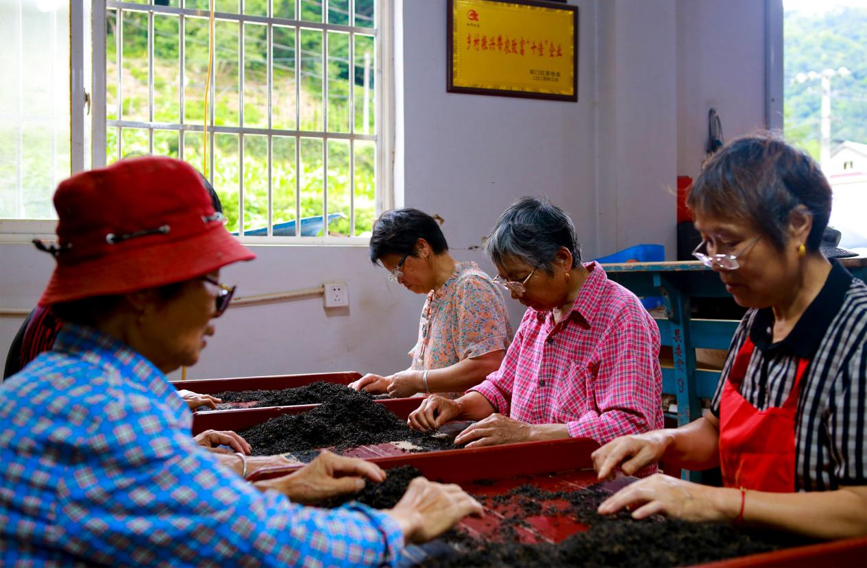 在這個群山環抱的小村里,吳旺林和他的紅茶廠是鄉親們最信賴的“錢袋子”。村里年輕人大多外出務工,留守的婦女們成了茶廠的主力軍。車間的分揀區,木板上的祁門紅茶色澤烏潤,散發著獨特的蜜香。早飯過后,上十位大姐正圍坐在一起,手指麻利地撿拾著干茶里的碎末、雜枝。“年紀大了,在‘家門口’干活,一天能掙百八十塊,還能照顧家里,真好!”60歲的孫敦蓮笑著說。