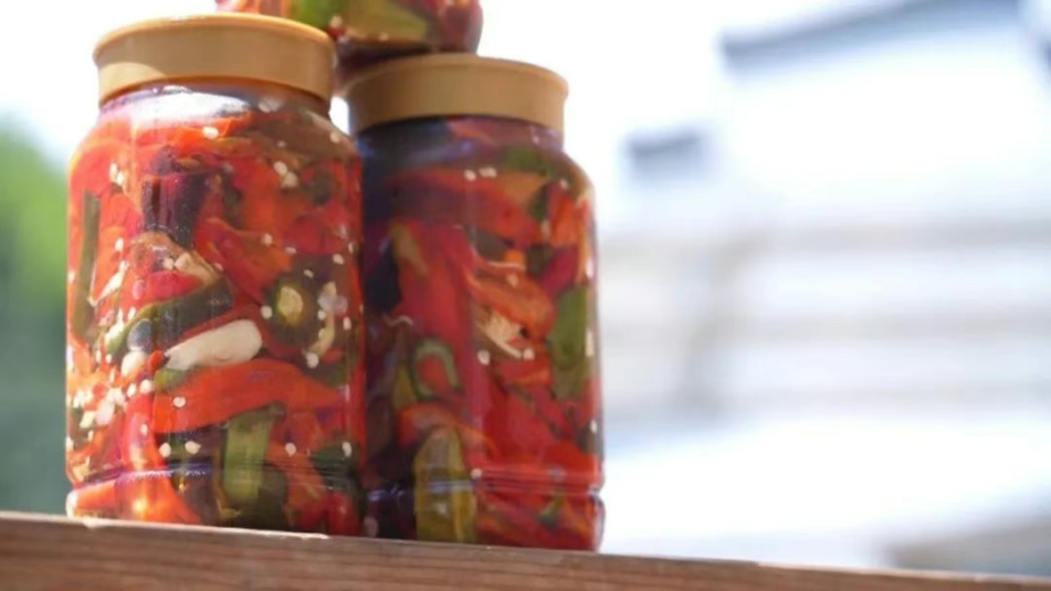 采摘下來的新鮮辣椒,一部分被村民直接拿到市場上售賣,另一部分則被腌制加工。腌制后的高山土辣椒皮肉厚、色彩艷、又脆又辣,成為餐桌上的美味佳肴,在市場上十分暢銷。“我們村共有360戶、1100余人,全村辣椒種植面積在1000多畝,產量每年在30萬—40萬斤左右,年產值有150多萬元。未來,我們將結合農產品交易中心項目的實施,通過商超對接、直播帶貨等,帶動辣椒等高山產業發展,進一步帶動村民致富增收。”楊村鄉篁村村黨總支第一書記、駐村工作隊隊長蔣子君說道。(鄭辰)