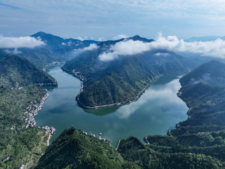 發源于黃山六股尖的新安江,一路向東穿山越嶺,百轉千回于徽州白墻黛瓦間,匯入杭州千島湖。地圖上看,新安江猶如一條綠絲帶串起安徽和浙江兩省。