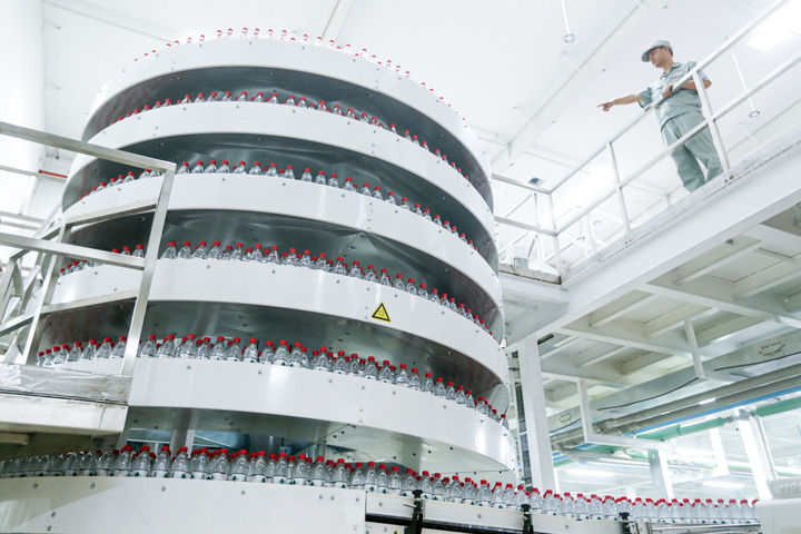 這是2024年8月13日拍攝的農夫山泉股份有限公司黃山生產基地內的自動化灌裝生產線。新華社發(施亞磊攝)